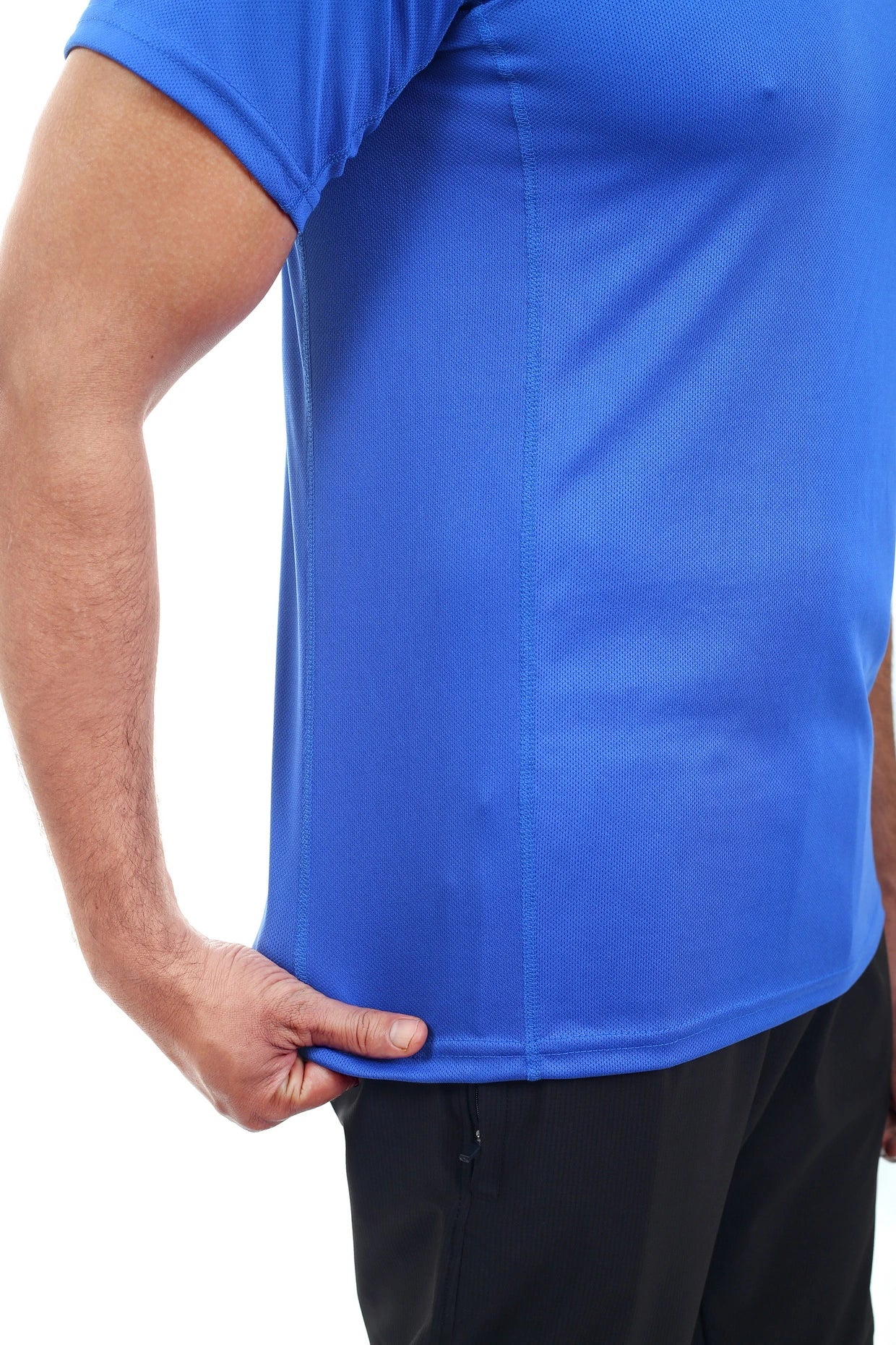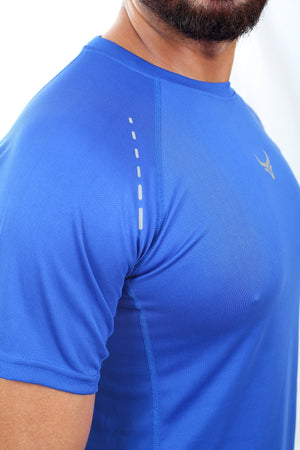 Stay cool and comfortable during intense workouts with the CoolMax Tee in Blue. Engineered with imported fabric and advanced CoolMax fabric technology, this performance tee effortlessly wicks away moisture, keeping you dry and focused. The seamless design ensures a chafe-free fit, round neck, short sleeves, while the strategic side panel design enhances ventilation. The reflective vinyl print on the chest, shoulder and back ensures visibility during low-light conditions.
