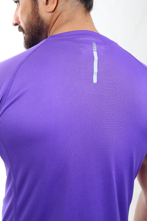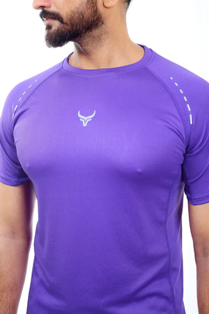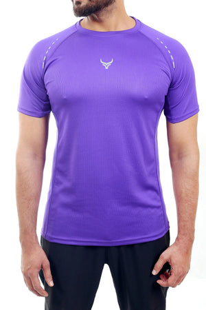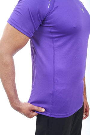: Stay cool and comfortable during intense workouts with the CoolMax Tee in Purple. Engineered with imported fabric and advanced CoolMax fabric technology, this performance tee effortlessly wicks away moisture, keeping you dry and focused. The seamless design ensures a chafe-free fit, while the strategic side panel design enhances ventilation. The reflective vinyl print on the chest, shoulder and back ensures visibility during low-light conditions.