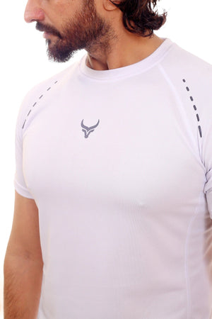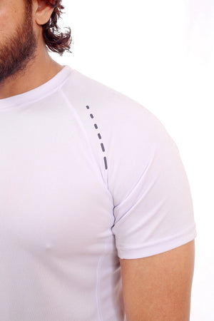 Stay cool and comfortable during intense workouts with the CoolMax Tee in White. Engineered with imported fabric and advanced CoolMax fabric technology, this performance tee effortlessly wicks away moisture, keeping you dry and focused. The seamless design ensures a chafe-free fit, while the strategic side panel design enhances ventilation. The reflective vinyl print on the chest, shoulder and back ensures visibility during low-light conditions.